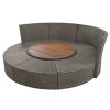 The centerpiece of this rattan sofa set is a round, liftable table with a wooden tabletop that doubles as an extra seating option thanks to its included cushion. This multi-functional table can be lifted to suit your needs.